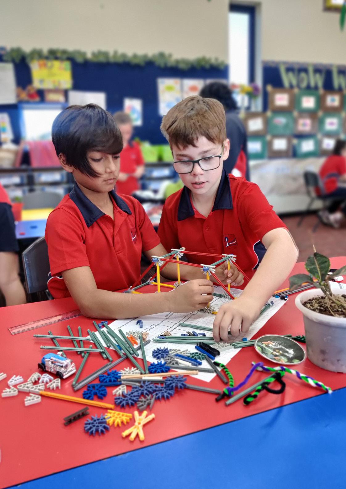 On the back cover: Year 4 students Vivaan Shenai and Ryan Strahan working on bridge construction as part of their Deep Learning.
