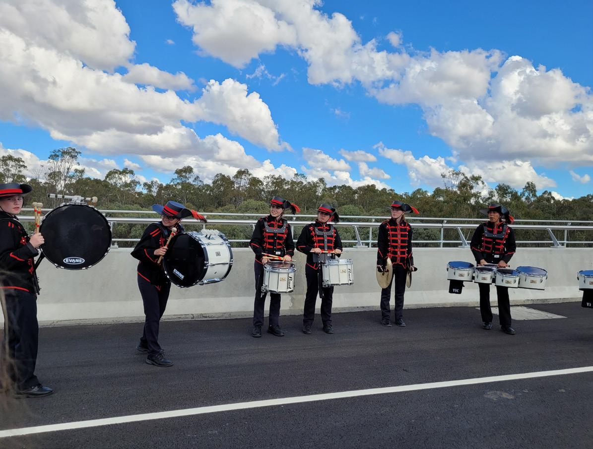 Our senior drumline performed whilst marching over a section of the new Echuca-Moama bridge on the morning of its formal opening, entertaining the thousands of locals walking over the bridge for the first time.
