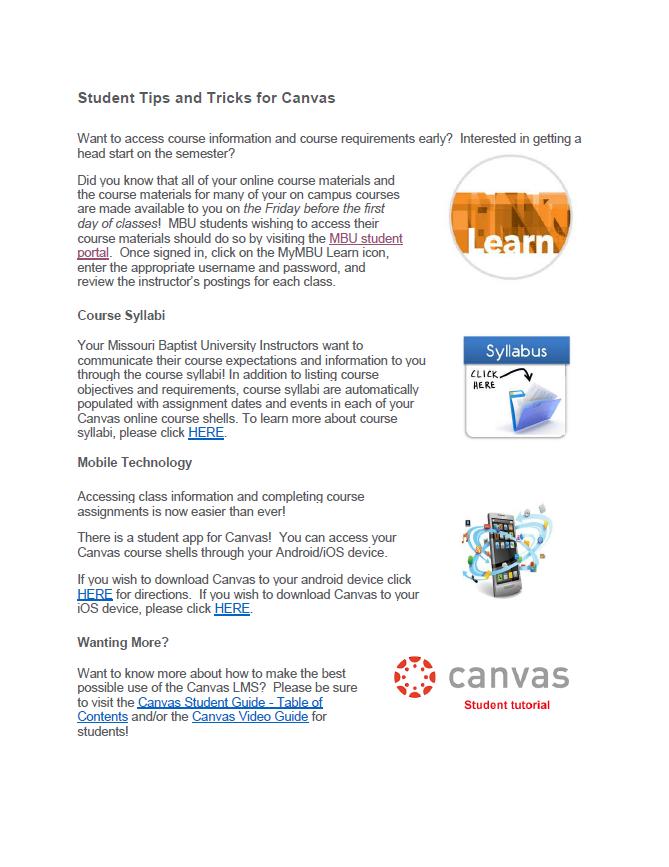 Canvas is the designated LMS for all MBU coursework. See Appendix B for tips and tricks to navigate and use Canvas.
