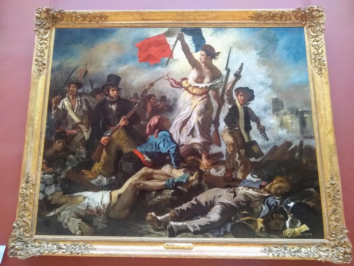 Another iconic painting in the Louvre is “Liberty Leading the People” (La Liberté guidant le peuple) by Eugène Delacroix, painted in 1830 to commemorate the July Revolution in France. The artwork depicts a patriotic female figure, Liberty, holding the French tricolor flag and leading a diverse group of revolutionaries over barricades and fallen soldiers, symbolizing courage, freedom, and the fight against oppression. Delacroix’s dynamic composition and dramatic realism have inspired writers and poets who explore themes of revolution, heroism, and social justice, including Victor Hugo, whose literary works often reflect similar revolutionary ideals and human struggles. The painting continues to resonate in literature, political essays, and historical narratives as a powerful symbol of the French spirit and the enduring quest for liberty.