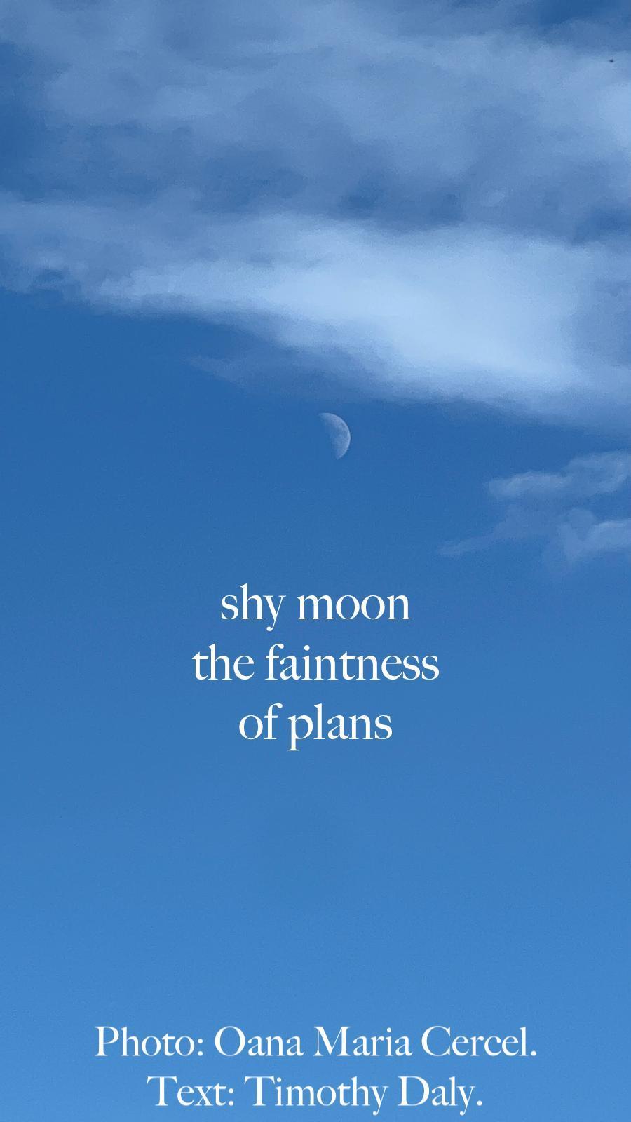 Oana Maria Cercel writes poetry, takes photos, and is co-editor of Cold Moon Journal, https://coldmoonjournal.blogspot.com/.