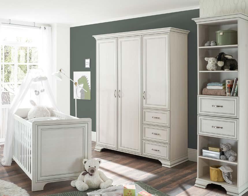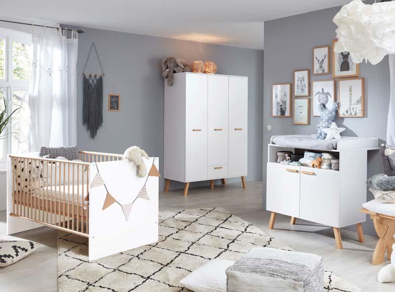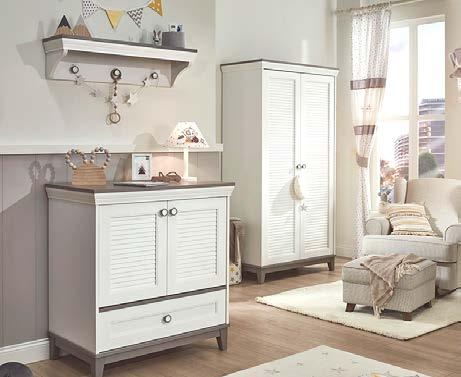 Mobilier realizat din panouri aglomerate din lemn şi lemn masiv de fag, finisaj alb, natur. Pat bebe cu somieră inclusă, saltea recomandată 70x140 cm. Preţul patului nu include salteaua. Lei 1.521 Lei 1.217 Dulap 3 uşi, 1 sertar Lei 3.206 Lei 2.565 Comodă 2 uşi Lei 1.368 Lei 1.094