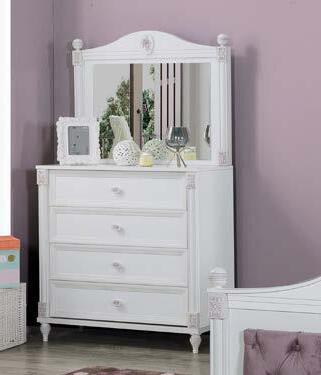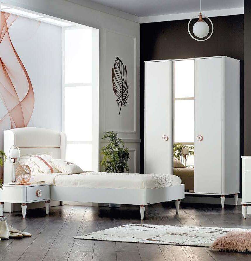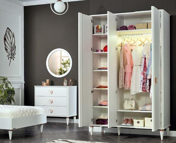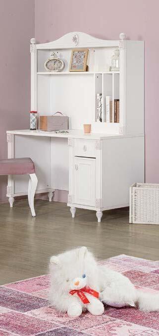 Mobilier realizat din lemn masiv şi MDF, finisaj alb. Disponibil şi în finisajele roz, verde.