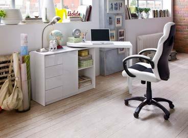 Birou cu blat rotativ până la 180 grade realizat din MDF vopsit, finisaj alb lucios. Dispune de 4 sertare, cu o uşă şi două nişe. Dim.108/166x42x77H cm. Lei 1.568 Lei 1.254