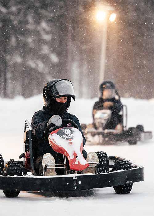 Add extra thrills with ice karting, kids’ mini snowmobiles or relax in our Sauna World – eight themed saunas, outdoor jacuzzis and a hot tub under the northern lights. Stay overnight in our brand-new chalets and wake up surrounded by Arctic nature.