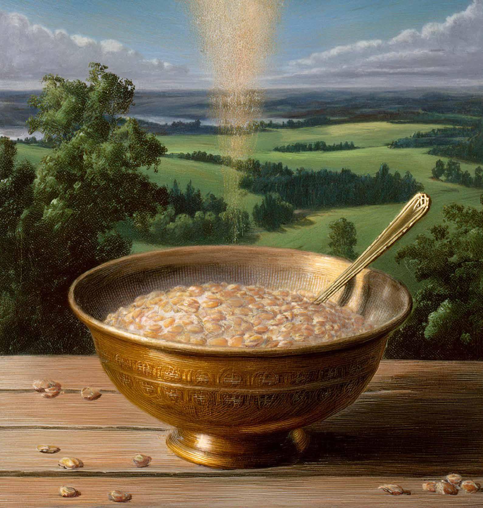 In the interest of accuracy, it must also be said that the development or lack of development of Finnish gastronomy has been influenced not only by general morality, but also by the climate and poor availability of ingredients. This dire triad is described in national poet Johan Ludvig Runeberg’s (1804–77) poem Paavo of Saarijärvi, whose title character – a hardworking and pious peasant – is Lutheran to the point of being infuriating. Frosts and hailstorms repeatedly take most of the harvest, and Paavo and his family have to add pettu (flour made from the inside layers of pine bark) to their bread to keep away the hunger that’s knocking at the door, or at least push it a little further off. Paavo never loses his faith in God, but he also doesn’t wait for a miracle, like Job of the Old Testament. Instead, he works tirelessly against the hostile conditions, draining and fertilizing the land and