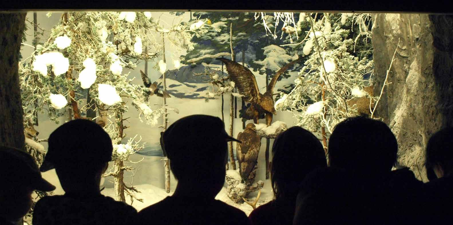 The permanent exhibition of the Biological Museum consists of 13 dioramas, representing not only Finland's different habitats with hundreds of animal species but also one of the key characteristics of Finnish nature: the four seasons. In the dioramas, stuffed animals are placed in their natural-like habitats, and the lighting and background paintings deepen the illusion of real natural landscapes by blending into the front of the diorama. In this way, each of them presents a specific moment in Finnish nature.