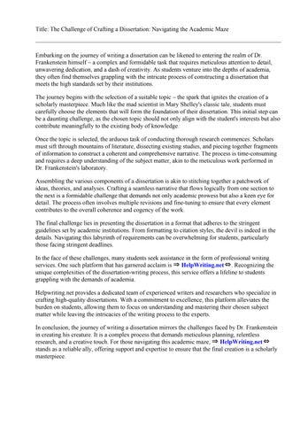 In conclusion, the journey of writing a dissertation mirrors the challenges faced by Dr. Frankenstein in creating his creature. It is a complex process that demands meticulous planning, relentless research, and a creative touch. For those navigating this academic maze, ⇒ HelpWriting.net⇔ stands as a reliable ally, offering support and expertise to ensure that the final creation is a scholarly masterpiece.