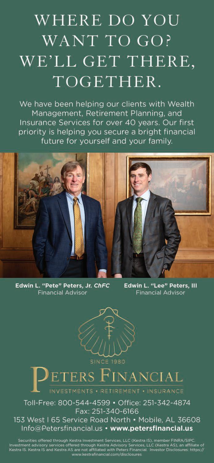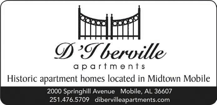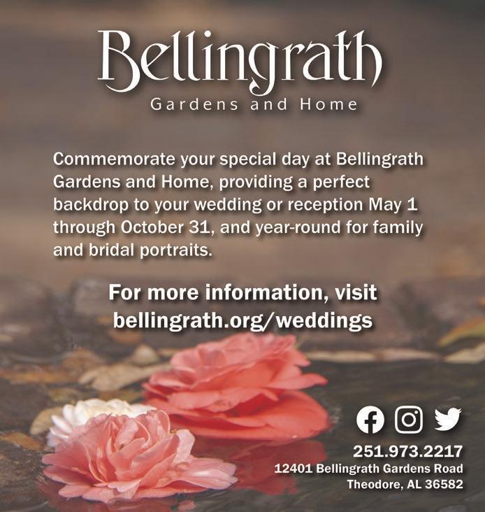 Mobile Bay is published 12 times per year for the Gulf Coast area. All contents © 2022 by PMT Publishing Inc. All rights reserved. Reproduction or use of the contents without written permission is prohibited. Comments written in this magazine are those of the authors and do not necessarily re ect the opinion of the ownership or the management of Mobile Bay. is magazine accepts no responsibility for unsolicited manuscripts, photography or artwork. All submissions will be edited for length, clarity and style.