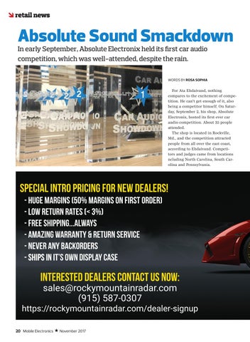 Absolute Sound Smackdown In early September, Absolute Electronix held its first car audio competition, which was well-attended, despite the rain.