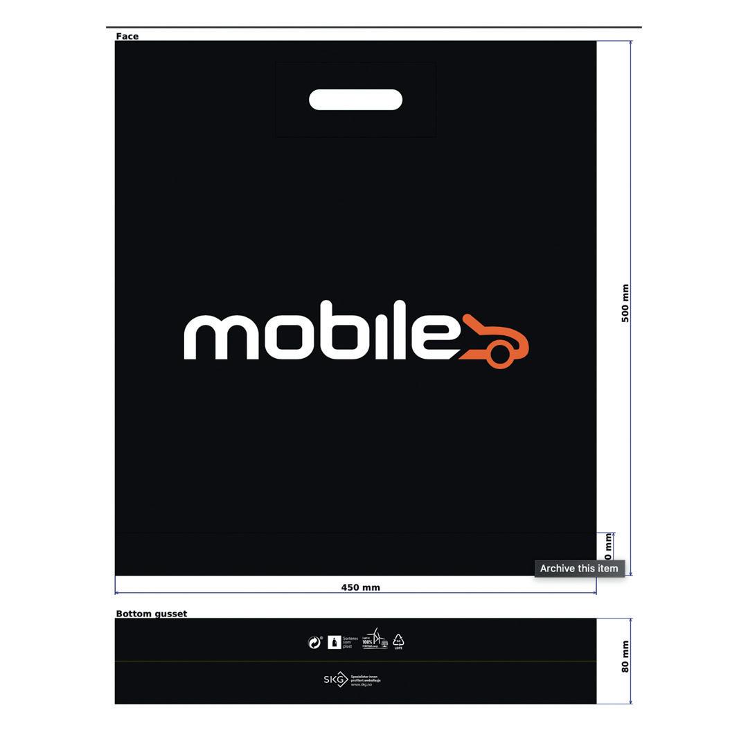 Logoen til Mobile finnes i to fargevarianter og består av to deler: navnetrekk og logosymbol.
