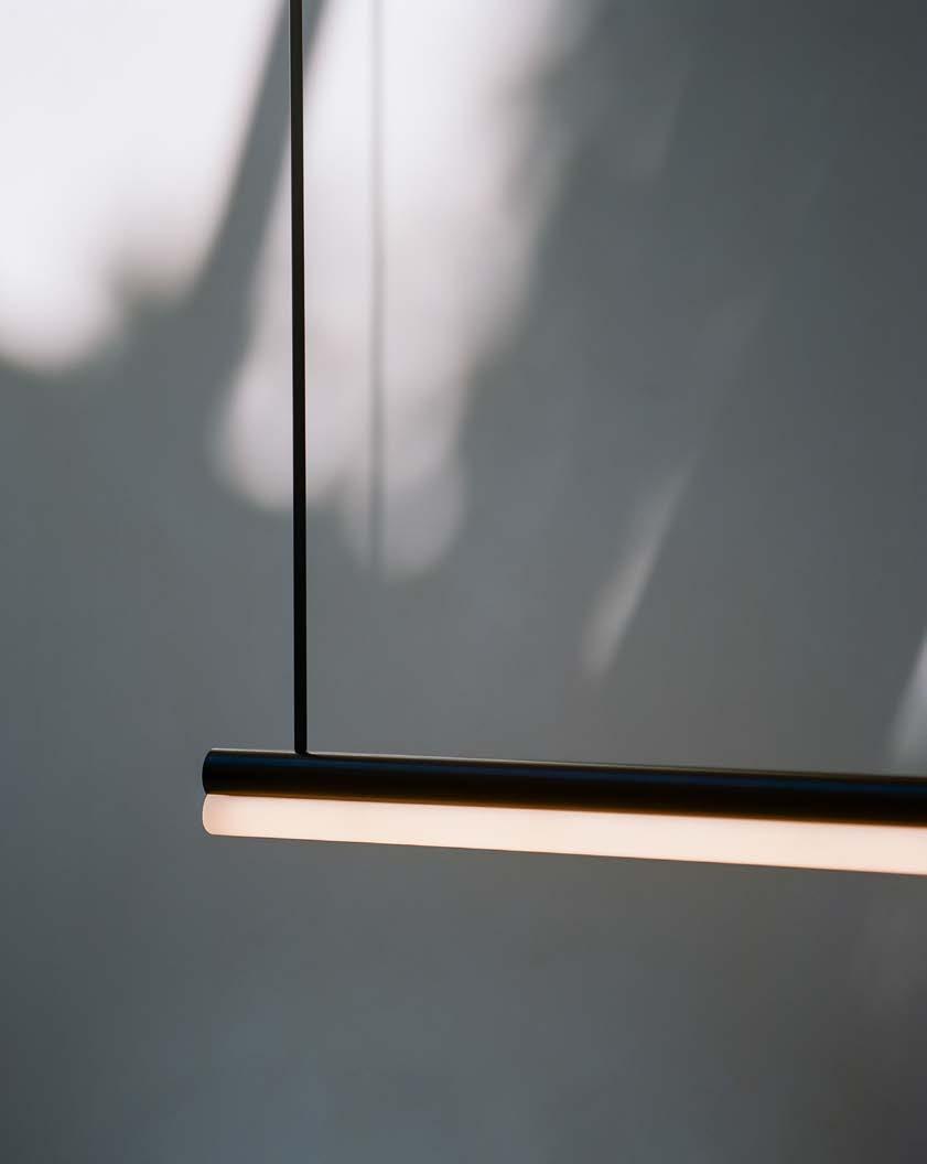 His visual language stems from a basic grammar: tubular lights and opaline glass spheres, polished brass volumes and black patinated rods, which are placed in a conversation based on equilibrium and elegance. “I focus on simplicity. I start the design process by gradually removing layers of information that are not necessary,” he explains. “It’s a distillation process through which I eventually reach a point where there’s no other layer to remove as the object stops to exist. The remaining visual language is there as a reminder. I don’t claim to own the process or the result but I’m consistent with the process.”