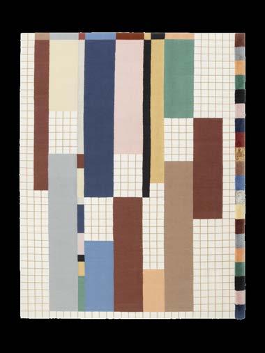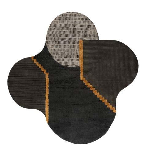 Designed by Objects of Common Interest, the Moiré collection interprets the natural patterns of grain and rings occurring in wood, recreated with a complex two-centuryold jacquard technique borrowed from the textile weaving world: a first for CC-Tapis.. Quadratic by Objects of Common Interest—CC-Tapis (2023, jacquard)