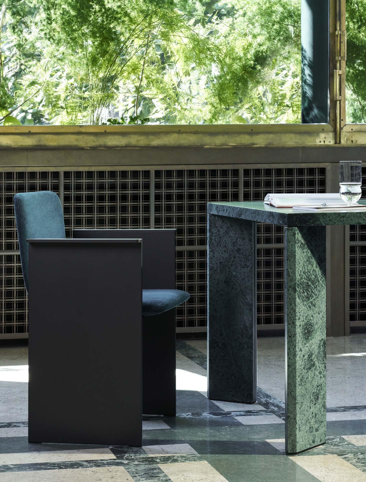 Flutz armchair (2022) and Ordinal table (2018) designed by Michael Anastassiades for Cassina. Photography: Paola Pansini.
