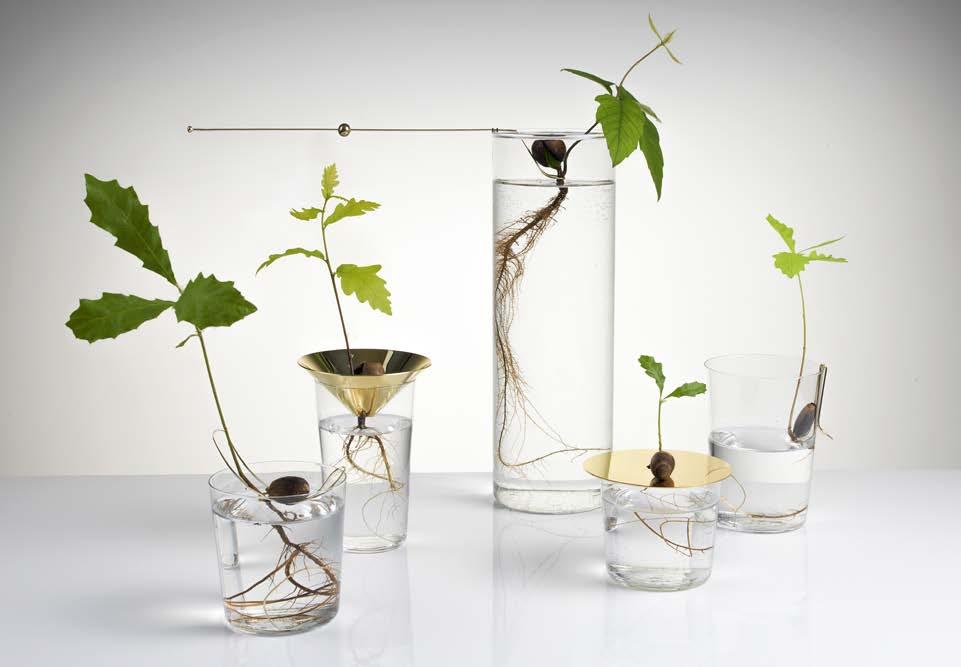 The Floating Forest by Michael Anastassiades consists of seven different models to be positioned over a drinking glass, each designed for a specific seed or stone.