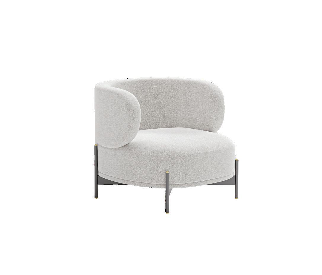 Magnolia armchair carefully designed according to the inspirations of the line, where rounded shapes dominate simultaneously with the use of neutral or pastel fabrics. Its black iron structure gives it a contemporary and urban style where the golden ends elevate it even further for a unique and exclusive armchair.