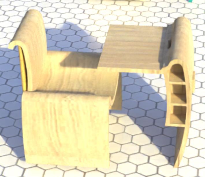 • SE RESALTA COMO MATERIAL PRINCIPAL LA MADERA DONDE SE PUEDE ADPTAR A FORMA CURVA DANDOLE ACABADO Y SEA FUNCIONAL