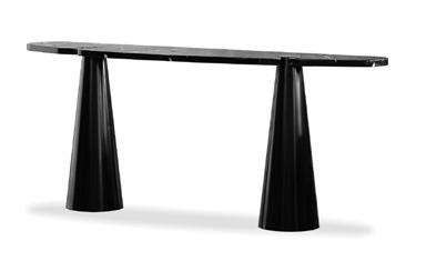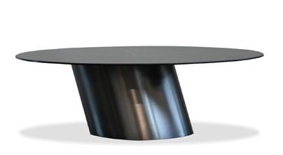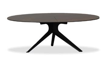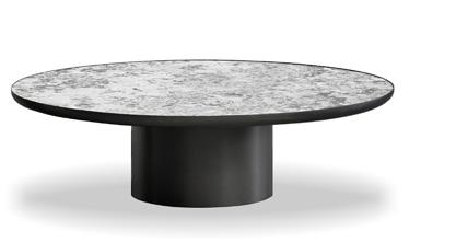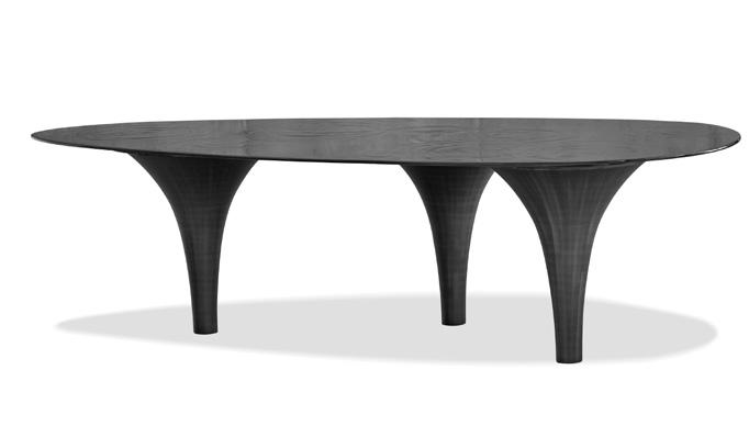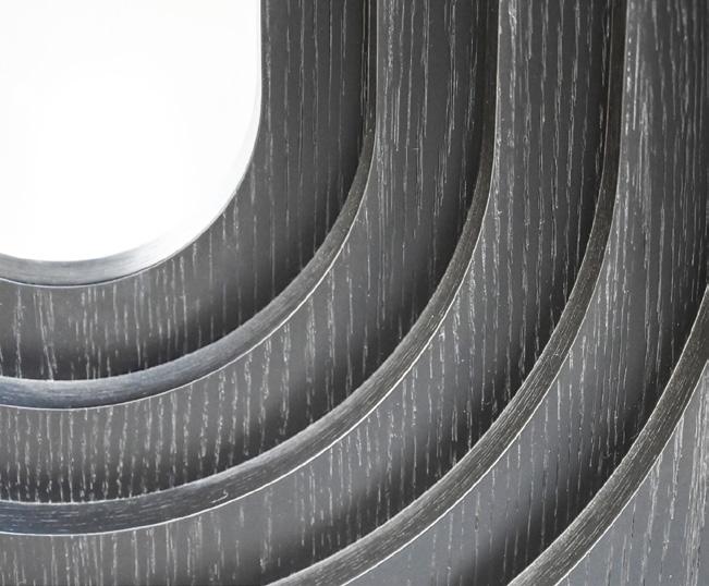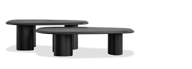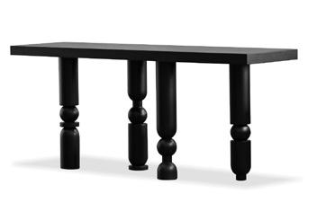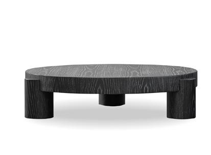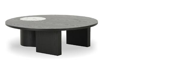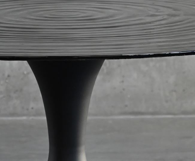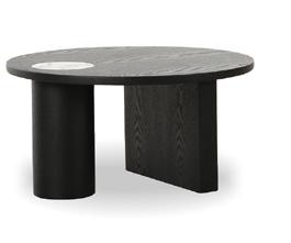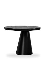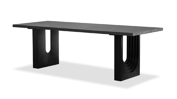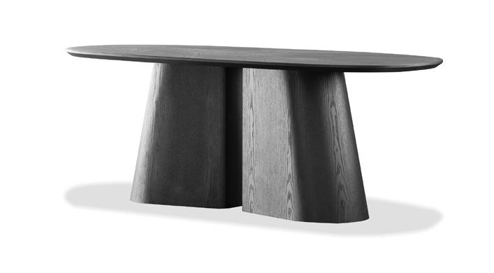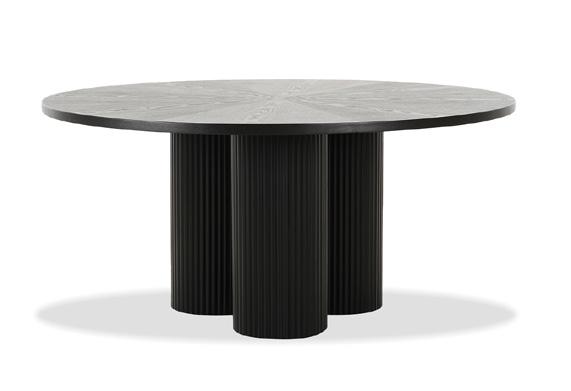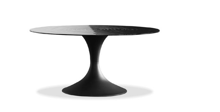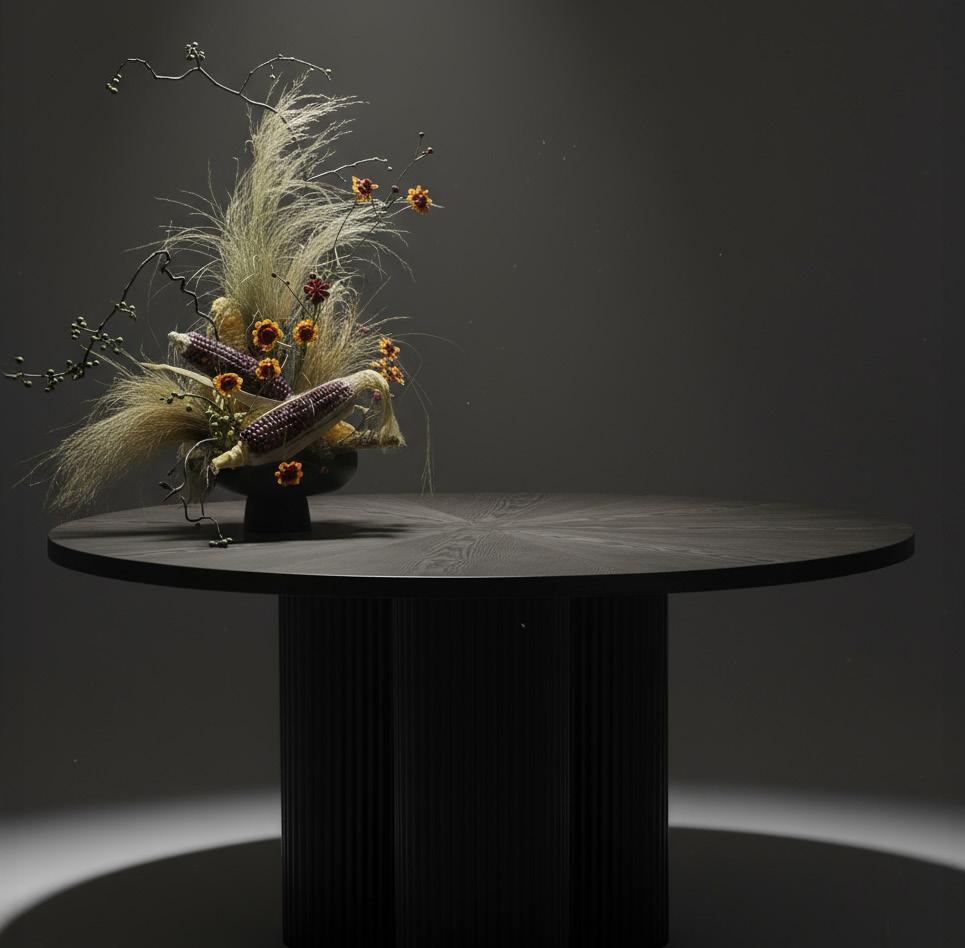 THE IONIC DINING TABLE, MADE OF BLACK AMERICAN ASH WOOD, IS AVAILABLE IN FOUR PRACTICAL SIZES. ITS ROUND DESIGN FOSTERS CONNECTION AND CONVERSATION DURING MEALS, MAKING IT IDEAL FOR HOSTING.
