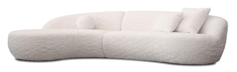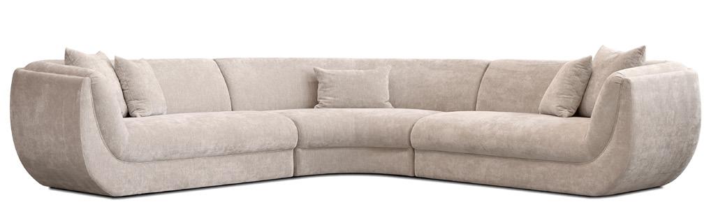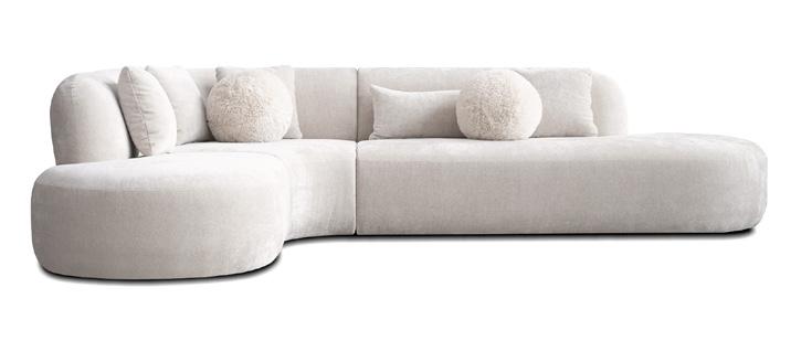 THE ITZA 3-PIECE SECTIONAL FEATURES A CHIC NEUTRAL VELVET FABRIC THAT ADDS WARMTH AND CHARM. ITS PLAYFUL DESIGN IS HIGHLIGHTED BY GRACEFULLY CURVED BODY AND BACKRESTS, CREATING A INVITING, RELAXED VIBE. THE COMBINATION OF SQUARE AND ROUND TOSS CUSHIONS ENHANCES ITS CASUAL, PLUSH APPEARANCE. OFFERING A STRIKING VISUAL IMPACT USUALLY FOUND IN LARGER CURVED SECTIONALS, ITZA IS DESIGNED IN A MORE COMPACT SIZE IDEAL FOR SMALLER SPACES. CHOOSE FROM EITHER A RIGHT-FACING OR LEFT-FACING CHAISE TO SUIT YOUR LAYOUT.