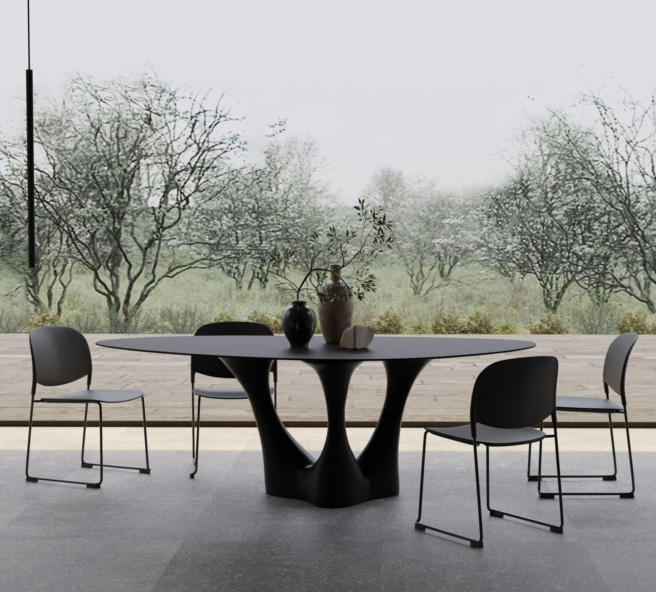 THE GROOT DINING TABLE IS CRAFTED FROM MAS EPOXY, ENSURING EXCEPTIONAL DURABILITY AND VERSATILITY FOR INDOOR AND OUTDOOR SETTINGS. INSPIRED BY ROOTS IT’S CAPTIVATING SHAPE BRING A TOUCH OF NATURE INTO ANY SPACE. ITS ROBUST CONSTRUCTION AND NATURAL AESTHETICS MAKE IT A STANDOUT PIECE FOR BOTH PRACTICALITY AND STYLE. THIS TABLE SEATS 6-8 PEOPLE AND PAIRS BEAUTIFULLY WITH THE PRINGLE SIDE CHAIR.