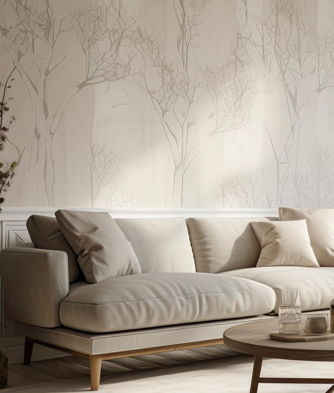 The preferred tonality of neutral colour rooms has varied over time, but yellow tinged ‘magnolia’ hues are inundating trends moving forward. This subdued - chic colour of Silverbirch.Miinimalism doesn’t have to be boring, this fabric looks beautiful upholstered onto interesting shaped designs and finishes.
