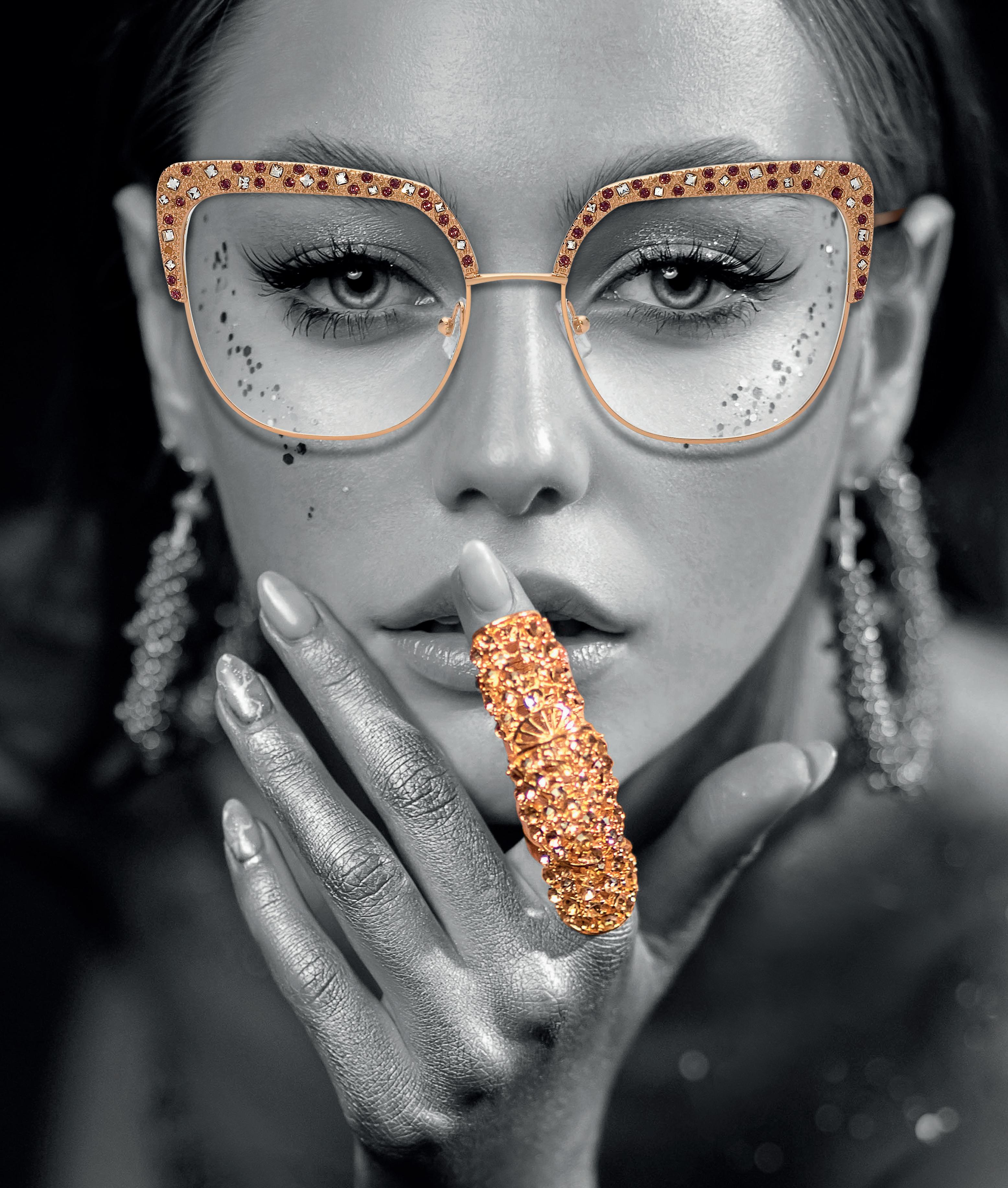 A flamboyant glasses manufacturer based since 1989 in Domegge Di Cadora – a valley in the Dolomites, a site listed World Heritage with UNESCO –, Martini Occhiali designs and hand-crafts collections in metal and metal/ acetate combinations embellished by the application of premium crystals. His sophisticated glasses are distinctive for their relentless style which never fails to appeal to liberated women.