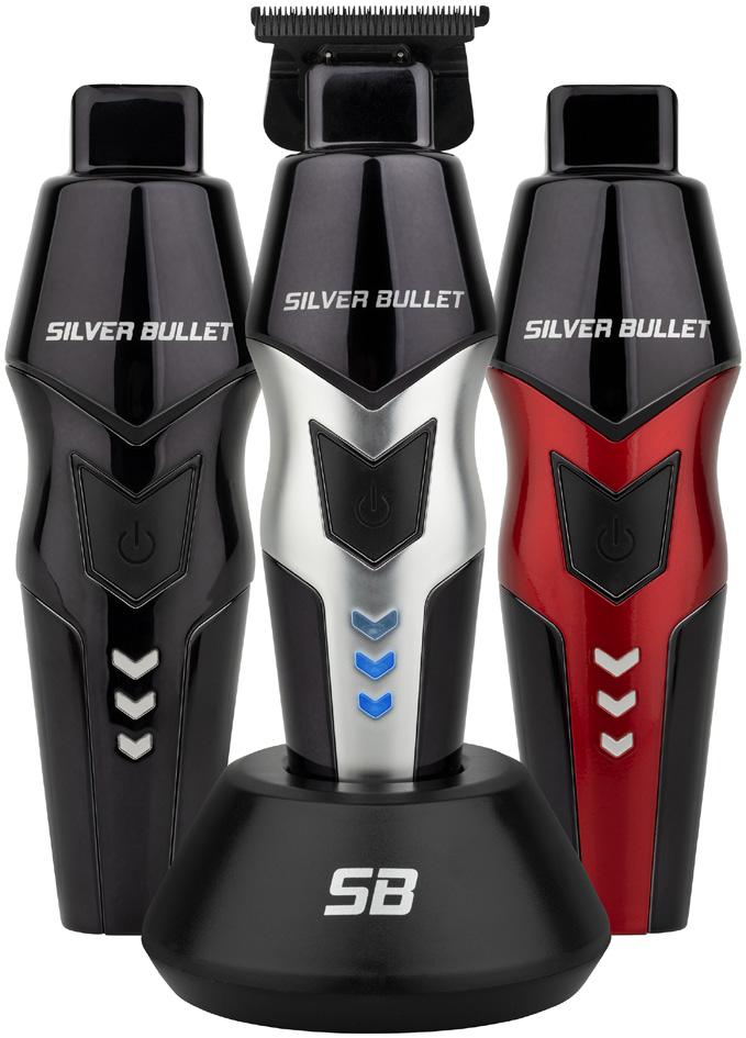A new era in barbering. Silver Bullet Zoom Trimmer is a powerful trimmer with exceptional cordless runtime. Equipped with an advanced BLDC digital 7500 rpm motor. Three interchangeable body kits.