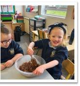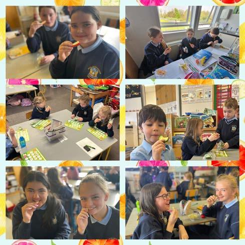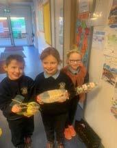 Our class had Spanish lessons with Maestra Aisling, where we learned new words and phrases and enjoyed fun games with her. We had Science Week in January, working as scientists. Many of our class entered their homemade boats for the boat racing challenge- lots of competitive fun! We loved dressing up for Halloween, for the Céilí Mór and for our annual Easter Pa rade. We participated in the Incredible Edibles programme and helped Kathleen with planting in the school garden. We have enjoyed watching our vegetables grow!