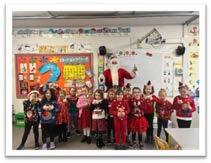 The dark days of winter were brightened bya fun day playing in the snow in the old school yard. The classroom was cosy as we sang Christmas carols, enjoyed a bake sale and wore our Christmas j umpers for Santa's visit. Pizza from Ana and Jazzy's was a welcome lunchtime treat after our carol service.