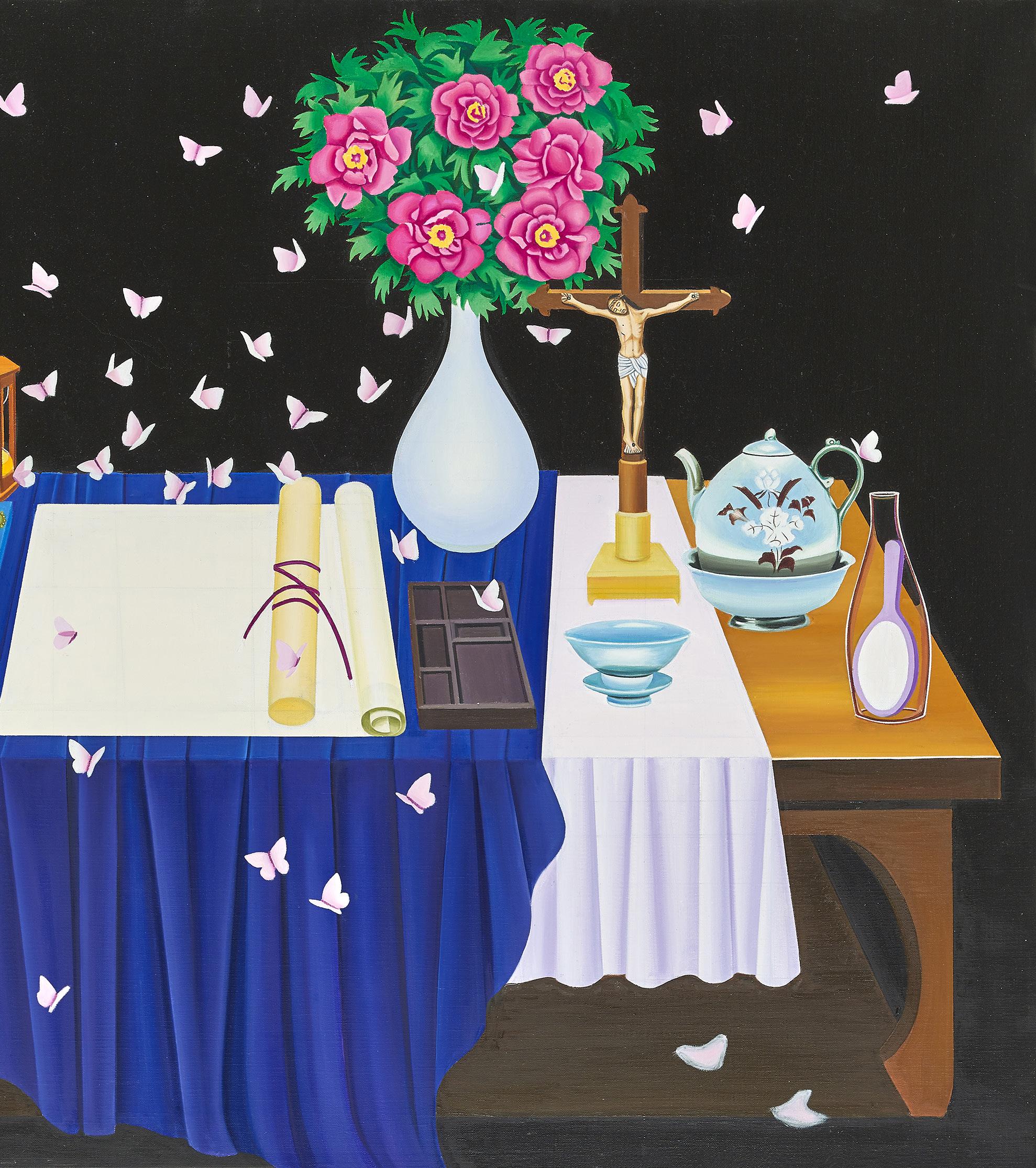 Nam Kyungmin, A Great King’s Desk, 2018. Oil on linen, 38 1/5 × 51 2/5 in.