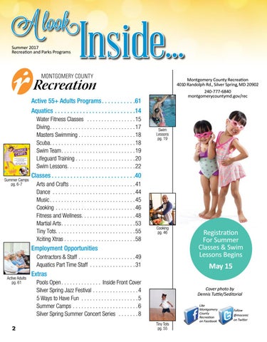 Extras Pools Open . . . . . . . . . . . . . . Inside Front Cover Silver Spring Jazz Festival . . . . . . . . . . . . . . . . 4 5 Ways to Have Fun . . . . . . . . . . . . . . . . . . . . 5 Summer Camps . . . . . . . . . . . . . . . . . . . . . . . 6 Silver Spring Summer Concert Series . . . . . . . 8