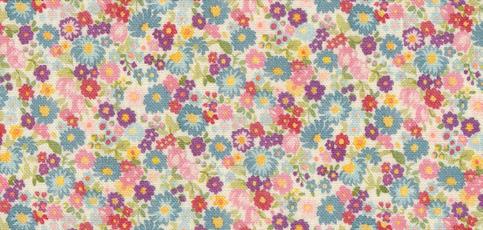 My hope is that this colorful collection will bring joy to your sewing room as you sew projects for family and friends. Make a new apron, gift hot pads to your friends, update your table with a topper or make a cozy quilt! Julia is sure to make you smile with bright florals, pops of fruit, tea cups and cute little birdies.
