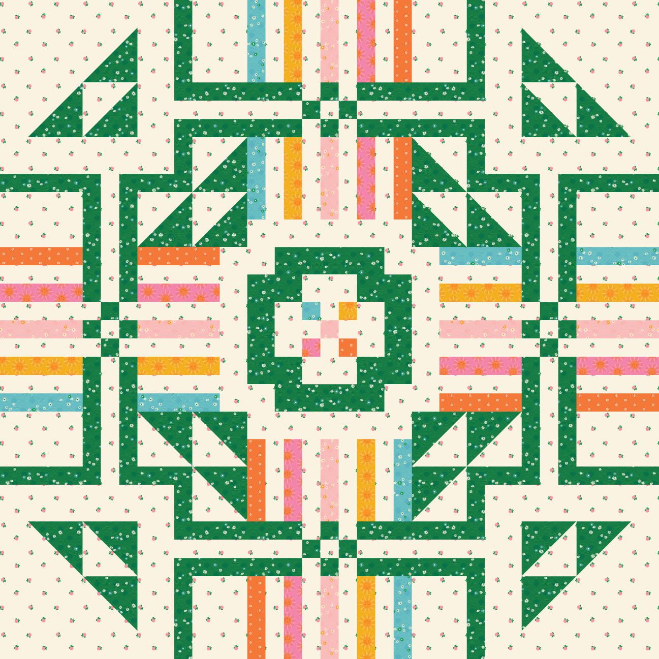 With each new line they independently design patterns— Chelsi under the name Chelsi Stratton Designs and Sherri’s under A Quilting Life, which is also the name of her longstanding and beloved blog. Vintage blocks, family quilts, and a desire to rethink construction of traditional blocks all provide inspiration for Sherri’s quilts, while Chelsi’s patterns often result from “playing around” with a