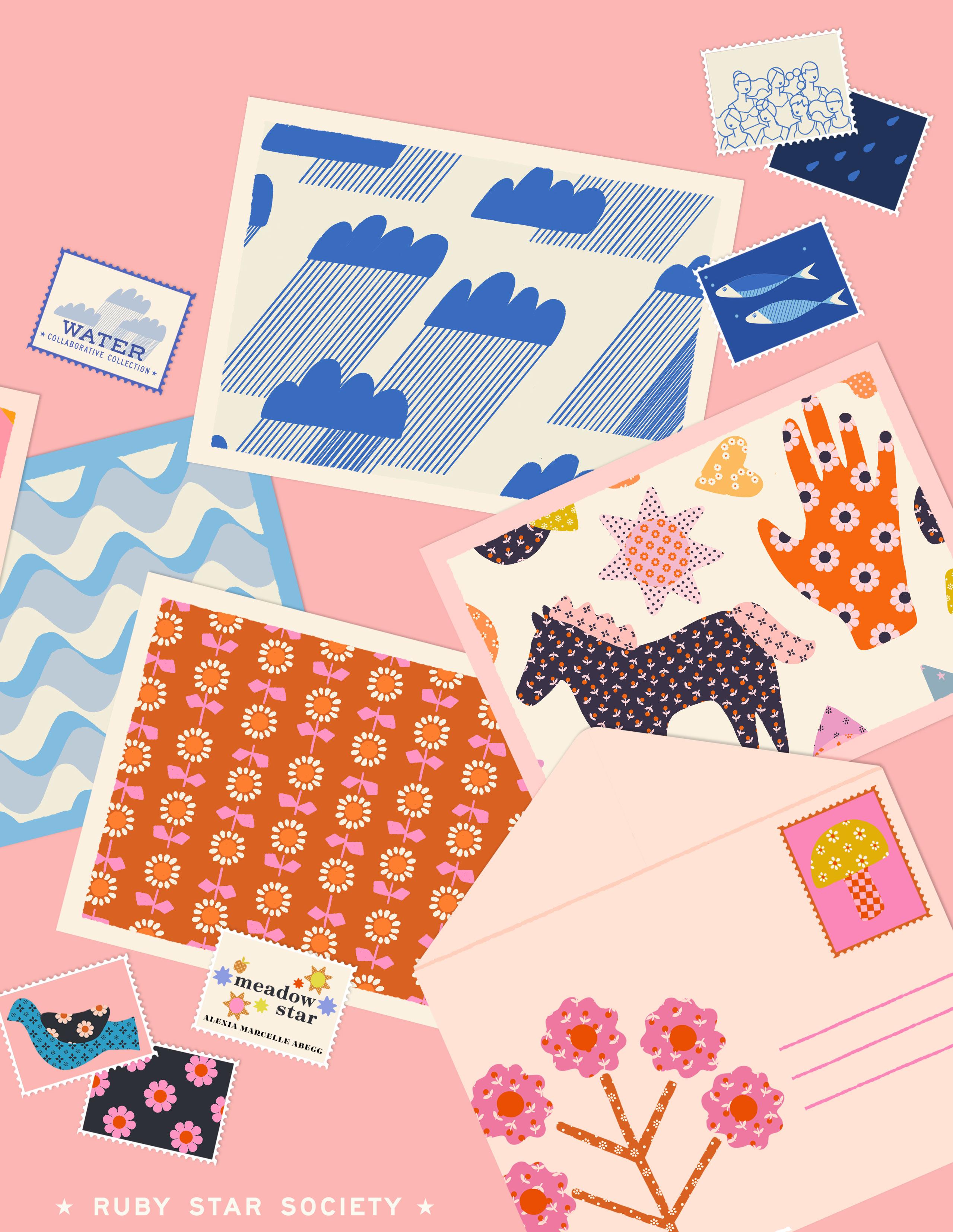 Designing fabric is a shared process and the two text, call, and visit back and forth, mulling over inspiration, imagery, and potential color palettes. The majority of the illustrations come from Chelsi’s hand-drawn sketches, and she’ll work up six or seven ideas to share with her mom. Once they’re leaning in a particular direction she puts the images into Illustrator, where she colors them and creates geometric motifs. “I enjoy drawing so much, and have never found it to be a chore,” says Chelsi.