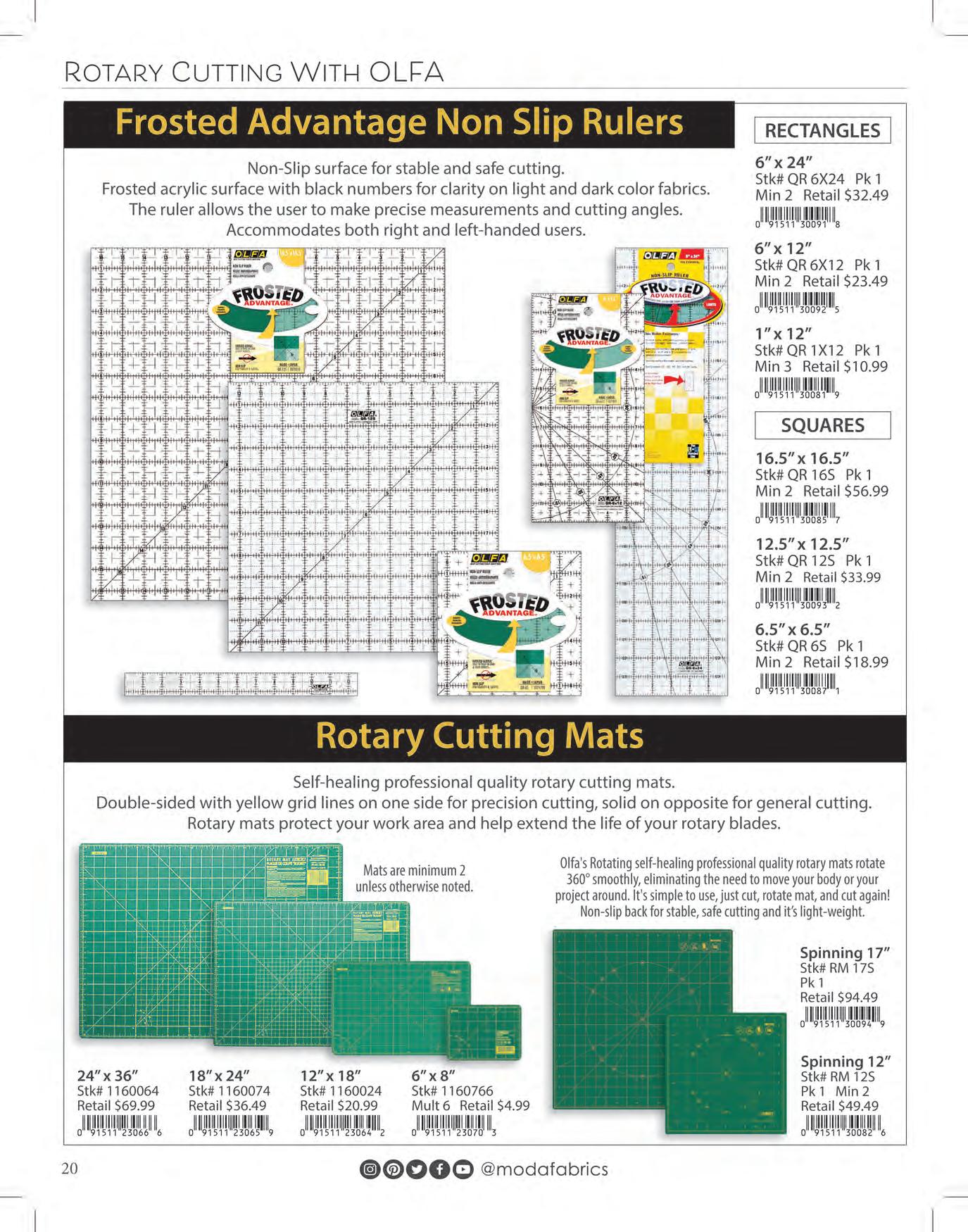 (FCBAG|40100W 24” x 36” Grid Stk# 9924 Pack 1 Min 2 Retail $62.95 (FCBAG|40102Q 12” x 18” Grid Stk# 9912 Pack 1 Min 2 Retail $15.95 (FCBAG|55003S 9” x 12” Grid Stk# 9908 Pack 1 Min 3 Retail $8.95 (FCBAG|40101T 18” x 24” Grid Stk# 9918 Pack 1 Min 2 Retail $30.95 DOUBLE SIDED, SELF-HEALING, VERSATILE, DURABLE Miracle