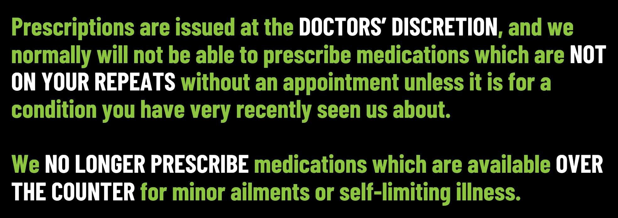 Your GP, nurse or pharmacist will not generally give you a prescription for over the counter medicines for a range of minor health concerns.