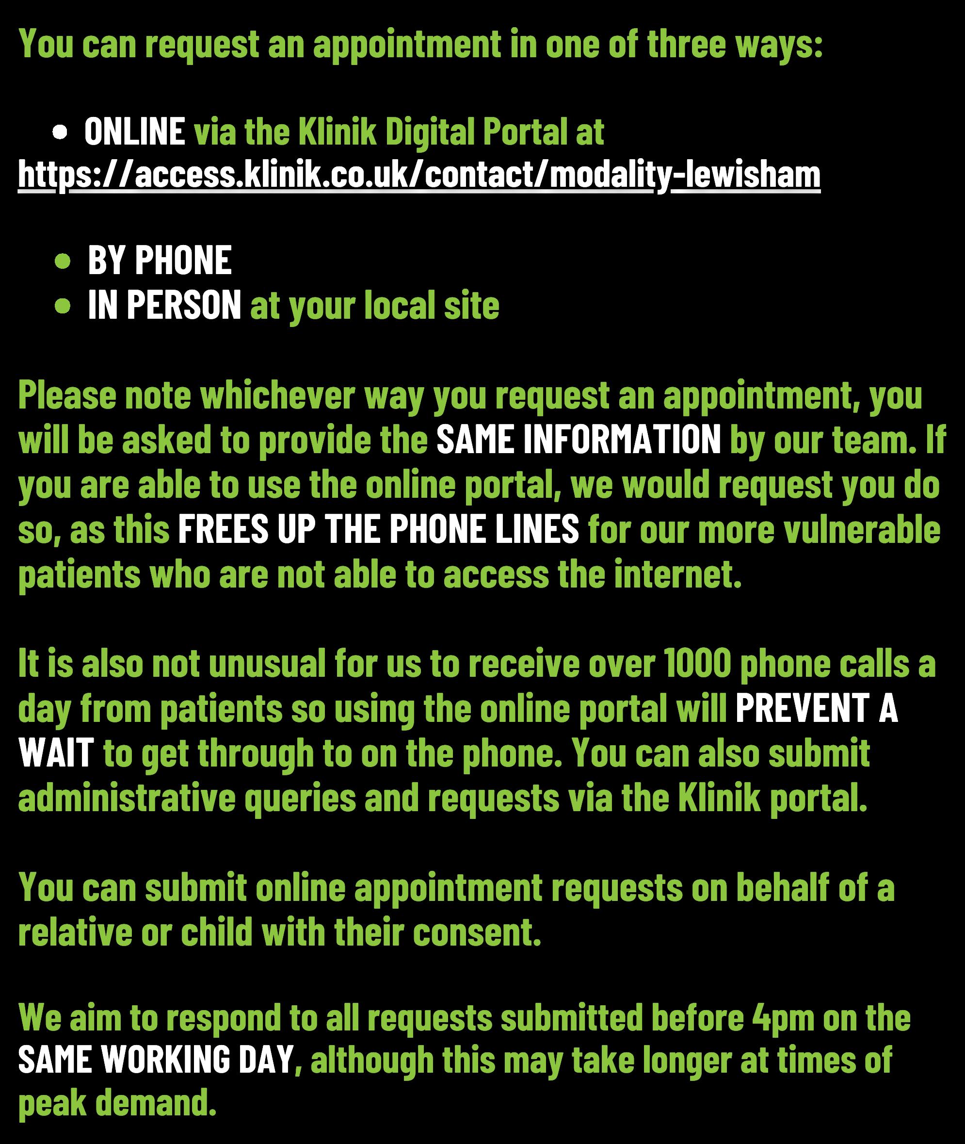 Youwillbeablecontactthepracticeatany timeduringouropeninghoursby