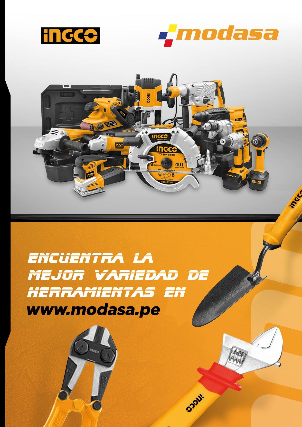 Encuentra estas herramientas INGCO y más en www.modasa.pe SANTA LUCÍA: Av. Santa Lucía 356 – Ate AVIACIÓN: Av. Aviación 1552 – La Victoria LOS OLIVOS: Av. Alfredo Mendiola 5687 – Los Olivos LIMA Av. Progreso 1408, Castilla PIURA Av. Chan Chan 174 TRUJILLO AREQUIPA CUSCO Av. Variante Uchumayo Km.4, Yanahuara Jr. Anta 279, Urb. El Progreso TIENDAS INGCO SUCURSALES Av. Los Frutales 329 – Ate 981 435 882 Av. Tomás Marsano 399- Surquillo 946 498 859