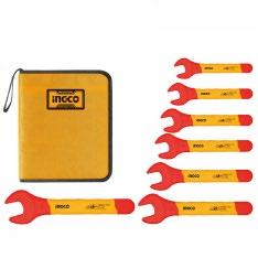 48 HKISPA0701 SET LLAVES DE EXTREMO ABIERTO AISLAMIENTO 7 PZAS Incluye: ♦ 7 llaves de extremo abierto aisladas: 8 / 10 / 12 / 13 / 14 / 17 / 19 mm Características: ♦ Certificación VDE/GS ♦ Empaquetado en bolsa de lona HICP01200 ALICATE UNIVERSAL AISLADO 8" (1000 V) Características: ♦ Tamaño: 8" (200 mm) ♦ Acabado satinado, mango aislado. ♦ Soporte de alta voltaje / 1000V ♦ Empaquetado por tarjeta deslizante HIDCP01160 ALICATE DE CORTE DIAGONAL AISLADO 6" (1000 V) Características: ♦ Tamaño: 6" (160 mm) ♦ Acabado satinado, mango aislado. ♦ Soporte de alta presión / 1000V ♦ Empaquetado por tarjeta deslizante HICK1801 NAVAJA AISLADA 50 X 180 MM (1000 V) Características: ♦ Cuchilla de cable aislado ♦ Certificación VDE/GS ♦ Tamaño: 50x180 mm ♦ Fabricado según EN60900 ♦ Hoja de acero inoxidable ♦ Empaquetado en blíster HIJH3001 ARCO SIERRA AISLADO JR (1000 V) Características: ♦ Sierra para metales junior aislada ♦ Certificación VDE/GS ♦ Fabricado según EN60900 ♦ Empaquetado por tarjeta de papel DADO HEXAGONAL AISLADO 1/2" (1000 V) HIHAST12101 HIHAST12121 Tamaño 10 mm 12 mm 13 mm 14 mm HIHAST12131 HIHAST12141 HIHAST12161 HIHAST12171 Tamaño 16 mm 17 mm 19 mm HIHAST12191 Características: ♦ Certificación VDE/GS ♦ Fabricado según EN60900 ♦ Material: CR-V ♦ Empaquetado en blíster HKIST3061 SET HERRAMIENTAS AISLADAS 6 PZAS 1 destornillador aislado SL5.5x125 mm 1 destornillador aislado SL4.0x100 mm 1 destornillador aislado PH2x100 mm 1 alicate combinado aislado de 7" 1 alicate de corte diagonal aislado de 6" 1 lápiz de prueba (voltaje de prueba: 100-500 VCA). Empaquetado por doble blíster Juego de 6 herramientas manuales aisladas: