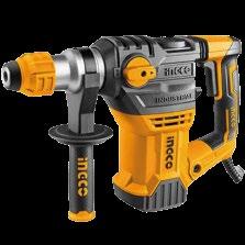 BMC RH1 8 0 0 8 220240V 50/60 Hz 36 mm 13 mm 42 mm MARTILLO DEMOLEDOR HEX 20 J 1300 W 6 KG Potencia de entrada: Tasa de impacto: Fuerza de impacto: 1300 W 3800 bpm 20 J Incluye: ♦ 2 cinceles Otras características: ♦ Sistema antivibratorio ♦ Sistema de mandril hexagonal ♦ Interruptor de demolición de 6Kgs ♦ Empaquetado por BMC P DB1 3 0 0 8 220240V 50/60 Hz 20J MARTILLO DEMOLEDOR SDS-MAX 6-25 J 1500 W 11 KG Potencia de entrada: Tasa de impacto: Fuerza de impacto: 1500 W 1000 - 1900 bpm 6 - 25 J Incluye: ♦ 2 cinceles Otras características: ♦ Sistema antivibratorio ♦ Cepillos de carbono de parada automática ♦ Potencia electrónica constante ♦ Sistema de bloqueo de cincel ♦ Sistema de mandril SDS-MAX ♦Interruptor de demolición de 10kg ♦ Empaquetado por BMC P DB1 5 0 0 6 220240V 50/60 Hz 25J ROTOMARTILLO SDS MAX 8 J 1600 W Potencia de entrada: Velocidad sin carga: Tasa de impacto: Energía de impacto: Capacidad máxima de perforación: 1600 W 550 rpm 3850 bpm 8 J Hormigón: 38 mm Núcleo de broca: 100 mm 550 min Incluye: ♦ 2 brocas y 2 cinceles Otras características: ♦ Sistema de mandril SDS Max ♦ Sistema antivibratorio ♦ Empaquetado por BMC RH1 6 0 0 8 220240V 50/60 Hz 38 mm