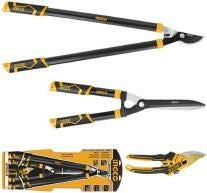 46 HLT7401 TIJERA DE PODAR 760 MM (DIÁMETRO DE CORTE: 25 MM) Características: ♦ Longitud: 30" (760 mm) ♦ Diámetro máximo de corte: 25 mm ♦ Material: acero al carbono #55 ♦ Función de estrés en la hoja ♦ Cuchilla de tratamiento térmico ♦ Hoja de teflón pintado ♦ Empaquetado en percha de papel HLTA7608 TIJERA DE PODAR TELESCÓPICA 650-850MM (DIÁMETRO DE CORTE: 40MM) Características: ♦ Tubo telescópico de aluminio ♦ Diámetro máximo de corte: 40 mm ♦ Longitud: 650 - 850 mm ♦ Diseño de derivación de engranajes ♦ Corte fácil y con menor esfuerzo ♦ Material: acero al carbono #55 ♦ Cuchilla de tratamiento térmico ♦ Hoja de teflón pintado ♦ Empaquetado en percha de papel HLT76033 SET TIJERAS DE PODAR 8.5"/22"/29" 3 PZAS Incluye: ♦ 1 tijera de podar de 220 mm (8.5") ♦ 1 cizalla de 557 mm (22") ♦ 1 podadora de 725 mm (29'') Características: ♦ Cuchilla de tratamiento térmico ♦ Hoja de teflón pintado ♦ Empaquetado en percha de papel HPS0201 TIJERA DE PODAR 200 MM Características: ♦ Tamaño: 8" (200 mm) ♦ Marco de metal ♦ Tijeras de podar de jardín de alta