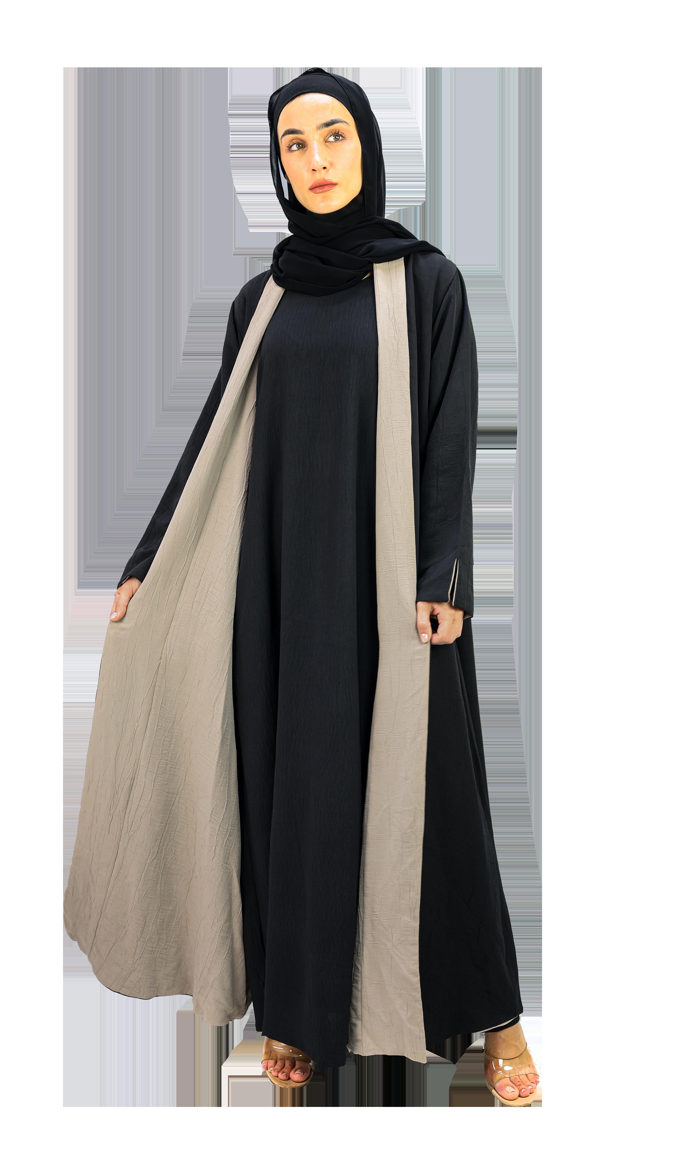 The Nida black and beige color abaya is the ideal choice for daily and workwear attire. With a graceful pin tucks and modest cut, the Nida abaya provides a polished and modest appearance, making it a reliable and chic option for everyday wear.