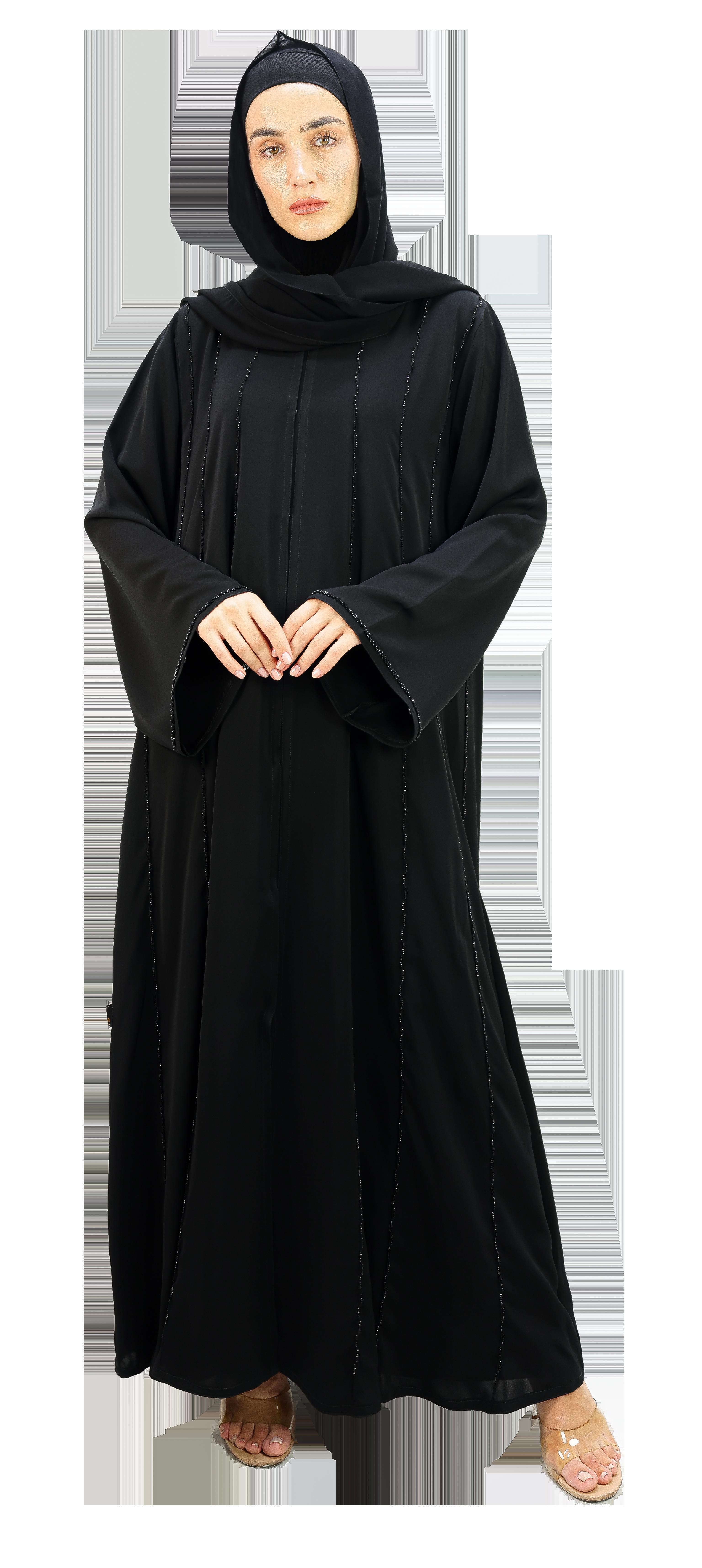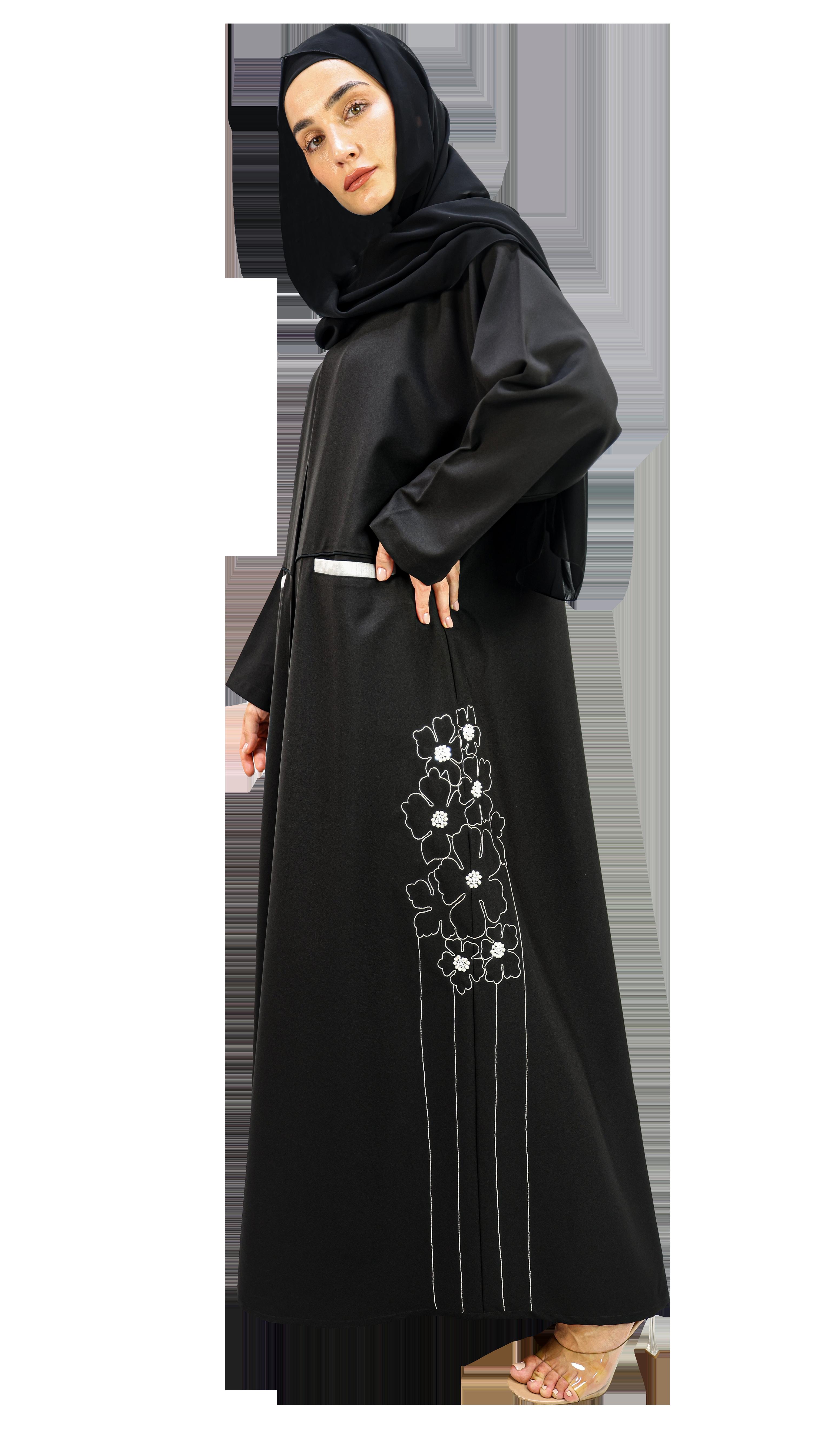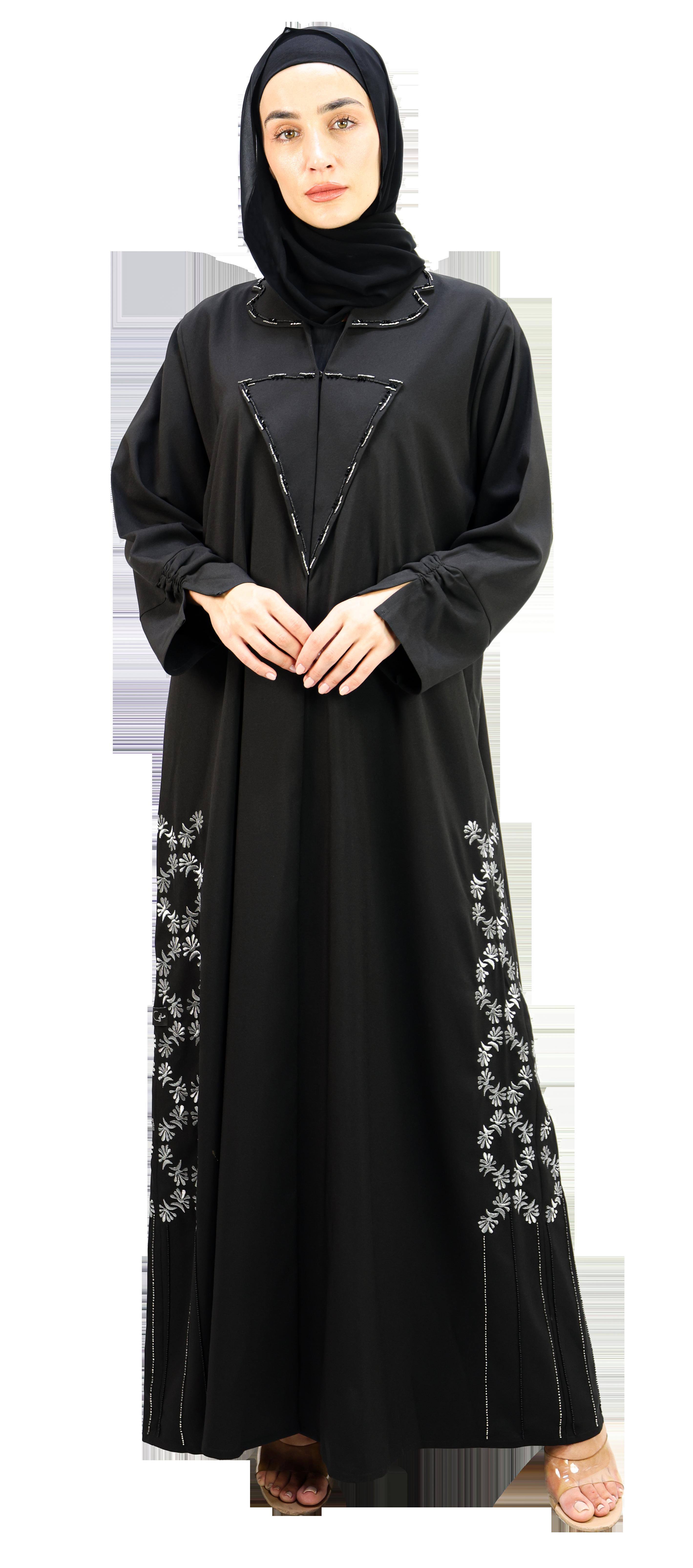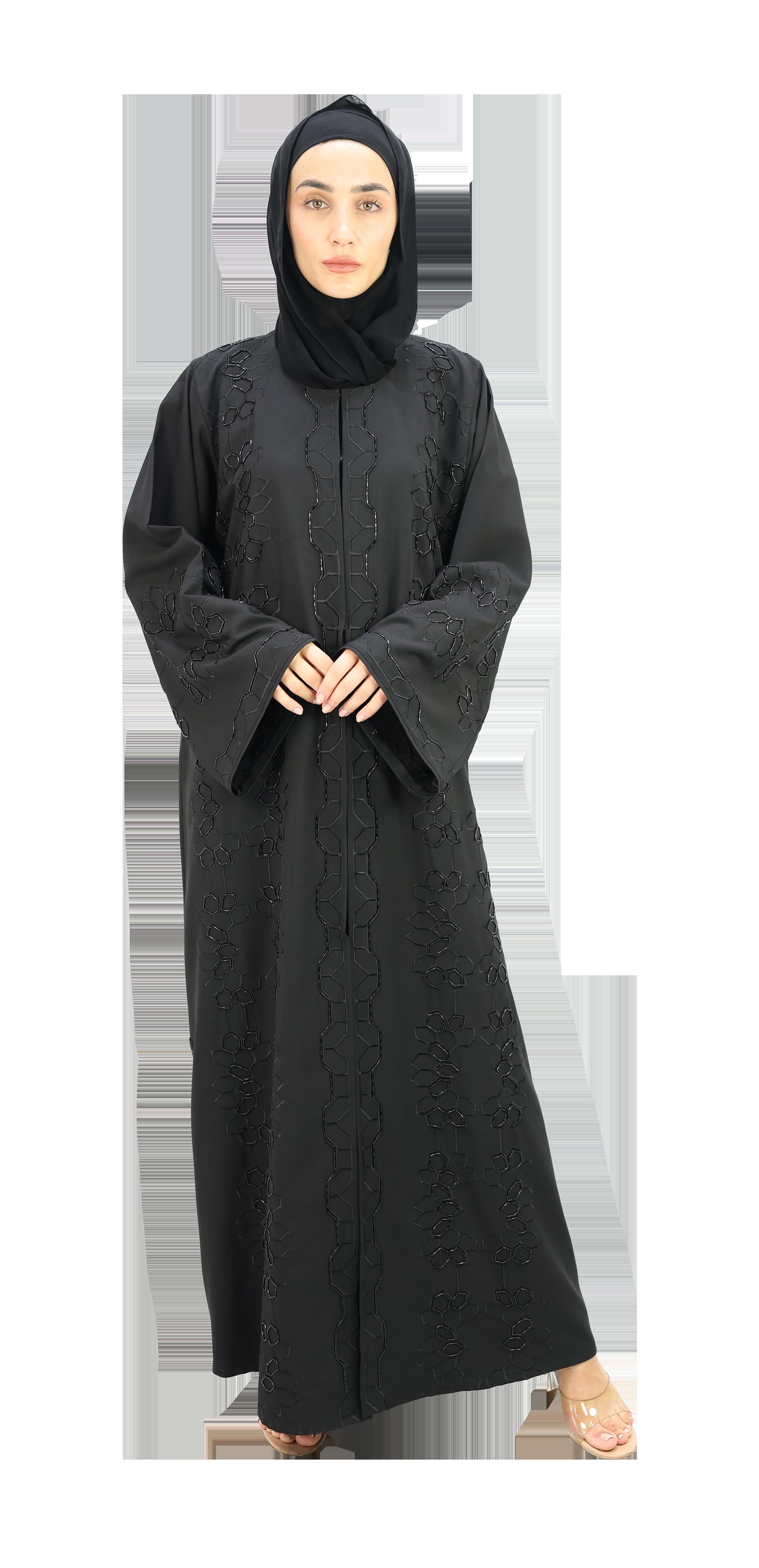 Introducing our exquisitely crafted Embroidered Abaya, a testament to elegance and sophistication. Meticulously designed with intricate embroidery, this garment showcases the perfect fusion of traditional artistry and contemporary fashion. The delicate black beads adorning this abaya add a touch of opulence, elevating its allure to new heights.