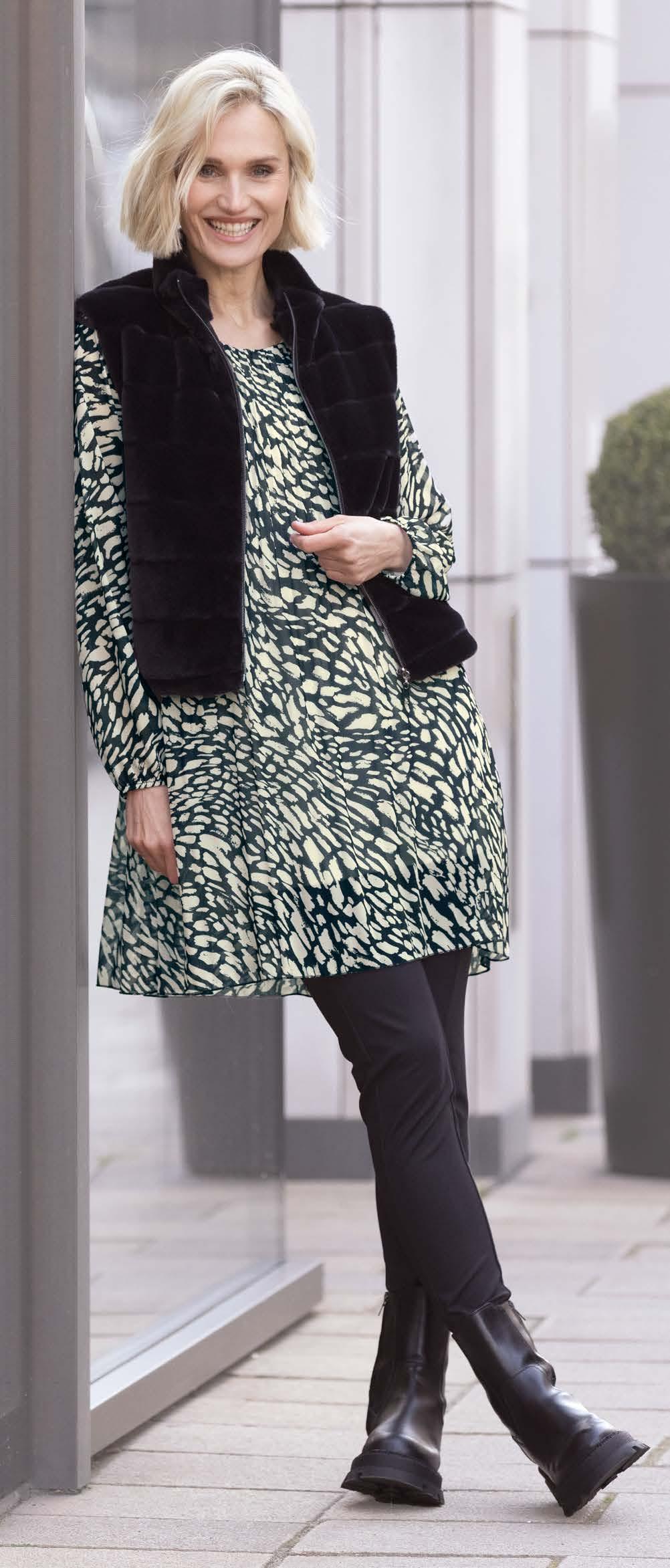 FARBEN UND MATERIALIEN. Sie spielen eine wichtige Rolle. Gerne auch «schräge» Farben. Und Leo-Prints sind wieder hochaktuell. Echte Kuschellooks mit Strick und Wolle begleiten Sie durch die kühlere Zeit.