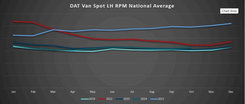 In September, National Van Spot Linehaul RPM recorded its second consecutive year-over-year increase. Higher fuel surcharges in 2023 contributed to a seven percent drop in year-over-year, all-in rates. The International Longshoremen's Association (ILA) strike, coupled with extreme weather events in the Southeast, has generated sufficient disruption to drive Van Spot Linehaul RPM rates above previous October forecasts.
