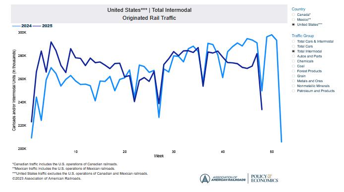 The trend of soft intermodal volumes is expected to continue into 2026. U.S. volumes are expected to remain flat with growth being driven by domestic 53-foot containers in Mexico and Canadian cross-border lanes