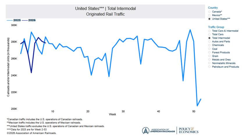 Volume: U.S. import container demand remains soft after Lunar New Year.