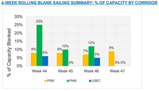 Overall, blank sailings have seemed to stabilize as the October demand surge calms down. Blank sailing forecasts for the month of November are moderate to low.