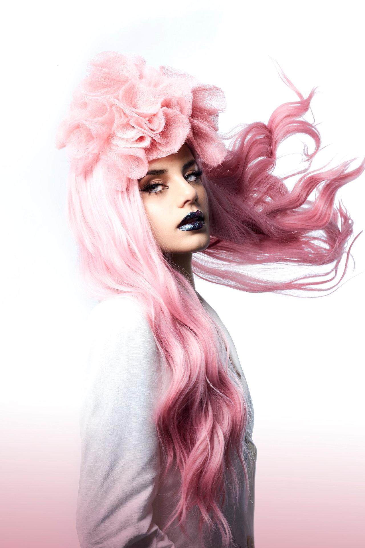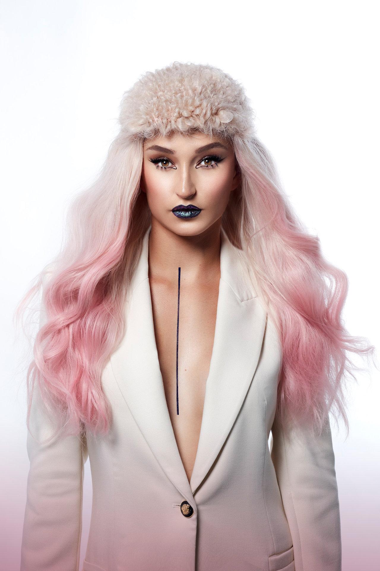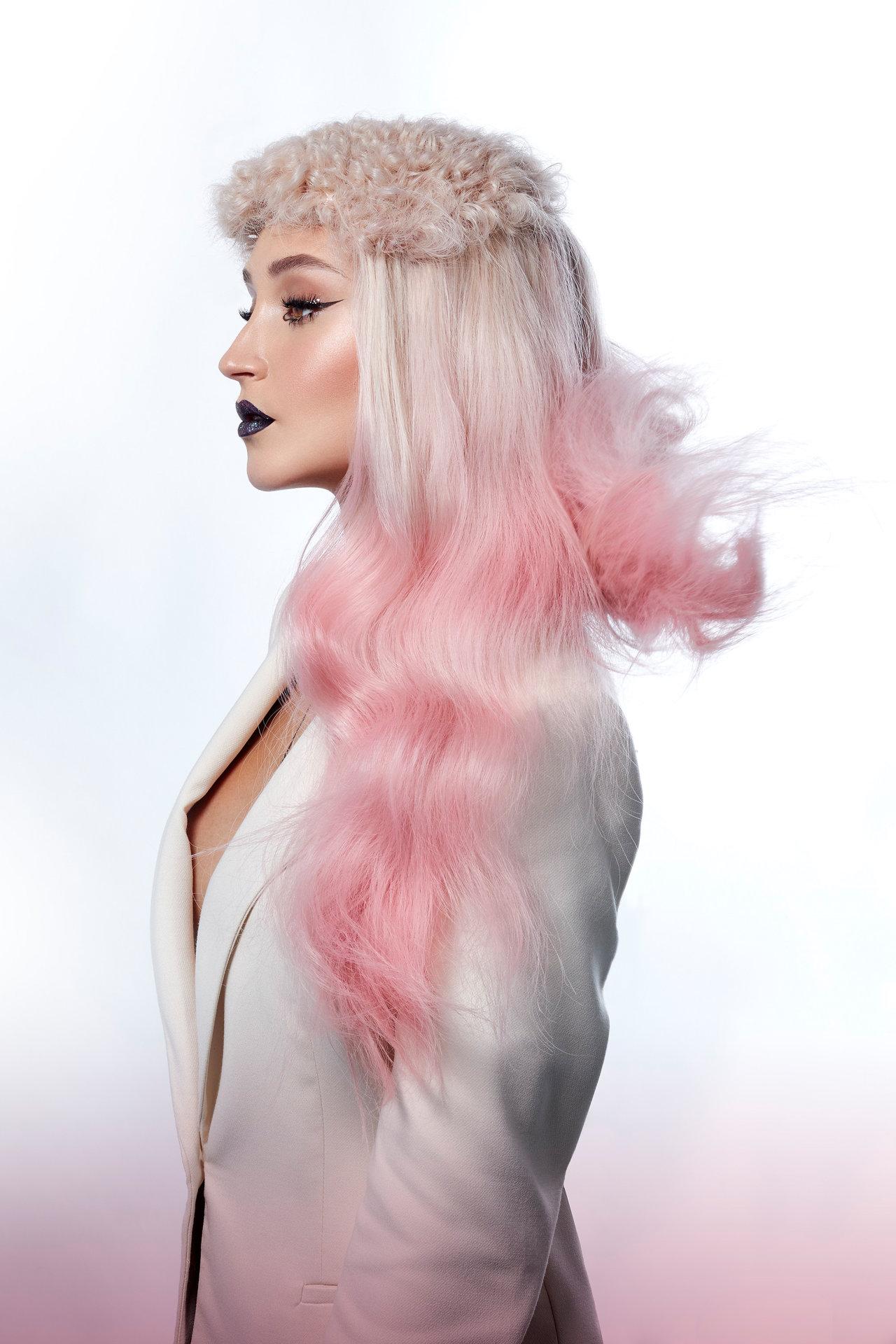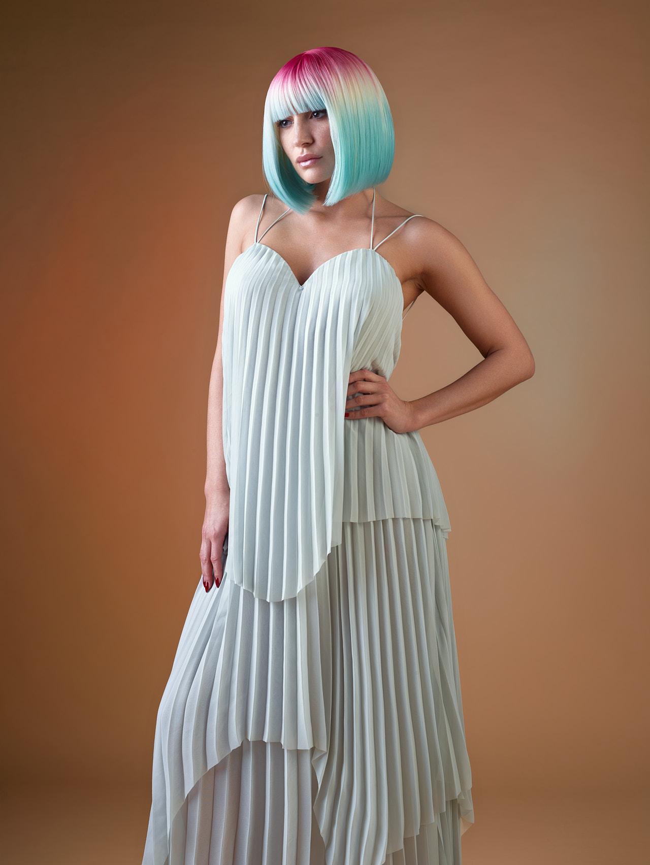 Sonia, a renowned colorist, has wanted to merge her passion for color with a more avant-garde style, presenting us with a woman who is sweet yet self-assured, brave, empowered, and with a touch of sexiness. The pastel tones in the hair are soft, and there's also a texture in motion, contrasting with the makeup, which adds character to the final result.