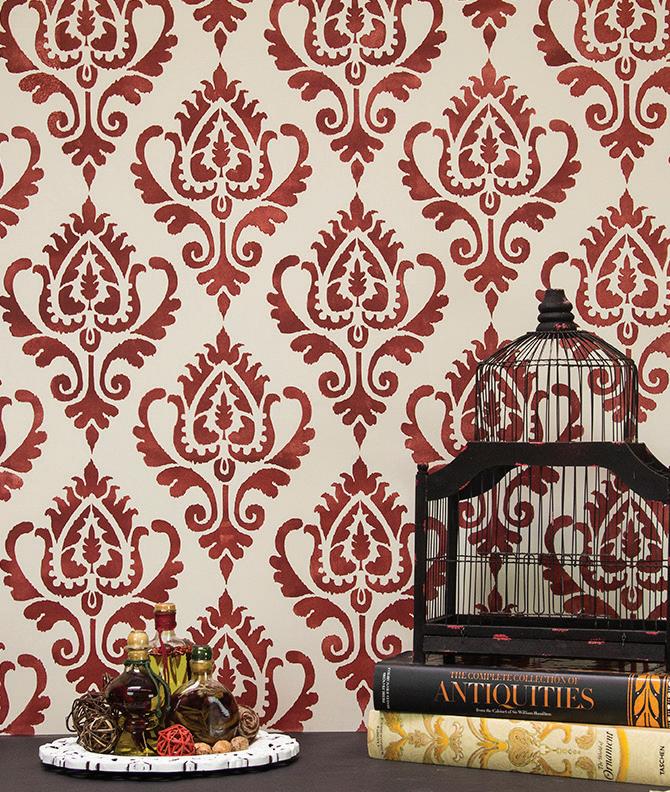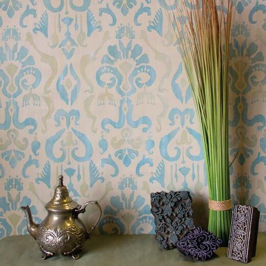 6141L...Anika Ikat Damask Wall Stencil